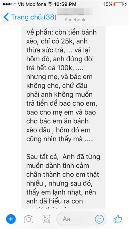 Câu chuyện đang thu hút sự chú ý này được đăng tải trên tài khoản Facebook có tên K.N. Rất nhiều người sau khi đọc xong cho rằng chàng trai hành xử không đáng mặt đàn ông, chỉ 85.000 cũng nằng nặc đòi lại, không chịu chi cho tình yêu.