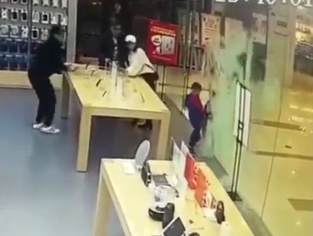Theo camera an ninh của cửa hàng, cậu bé mặc áo xanh đang cùng 2 người lớn tiến vào cửa hàng điện thoại và em là người mở cửa đi vào trước. Tuy nhiên, bé trai chưa kịp mở hết cửa ra thì chiếc cửa kính to nặng đột ngột vỡ vụn dưới tay em. Rất may cậu bé không bị thương nặng.