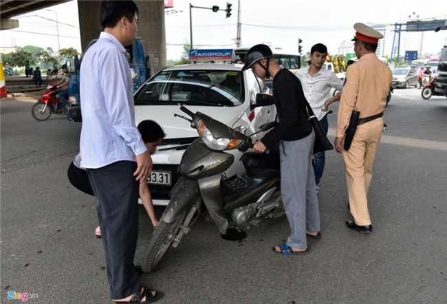 Một vụ tai nạn xảy ra ở ngã tư Giải Phóng - Pháp Vân do mật độ phương tiện cao và các xe không chịu nhường nhau. |