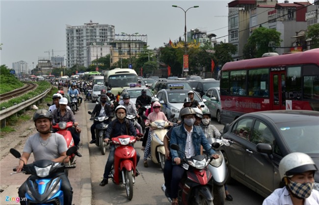 Sáng sớm 29/4, đường Giải Phóng (đoạn qua bến xe Nước Ngầm) đã đông đúc các phương tiện lưu thông. |