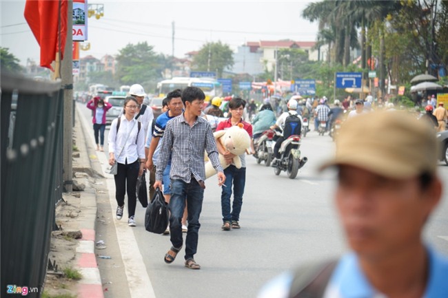 Nhiều người đi bộ ngược chiều để tìm lối vào bến xe... |