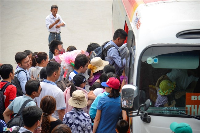 Theo ghi nhận của Zing.vn, sáng 29/4, lượng khách đổ về bến xe Nước Ngầm không còn đông như ngày 28/4. Tuy nhiên vẫn xảy ra tình trạng chen lấn để được lên xe. |