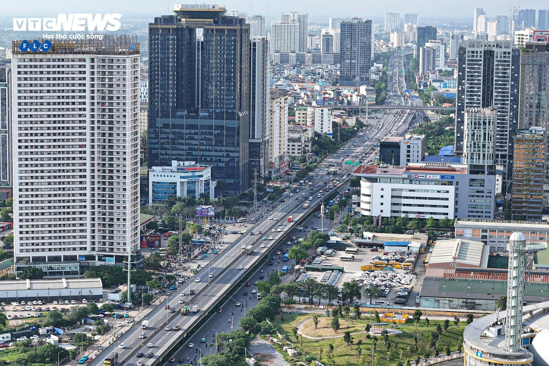 Phương tiện chen chúc nối đuôi nhau tại vành đai 3 trên cao đoạn trước bến xe Nước Ngầm.