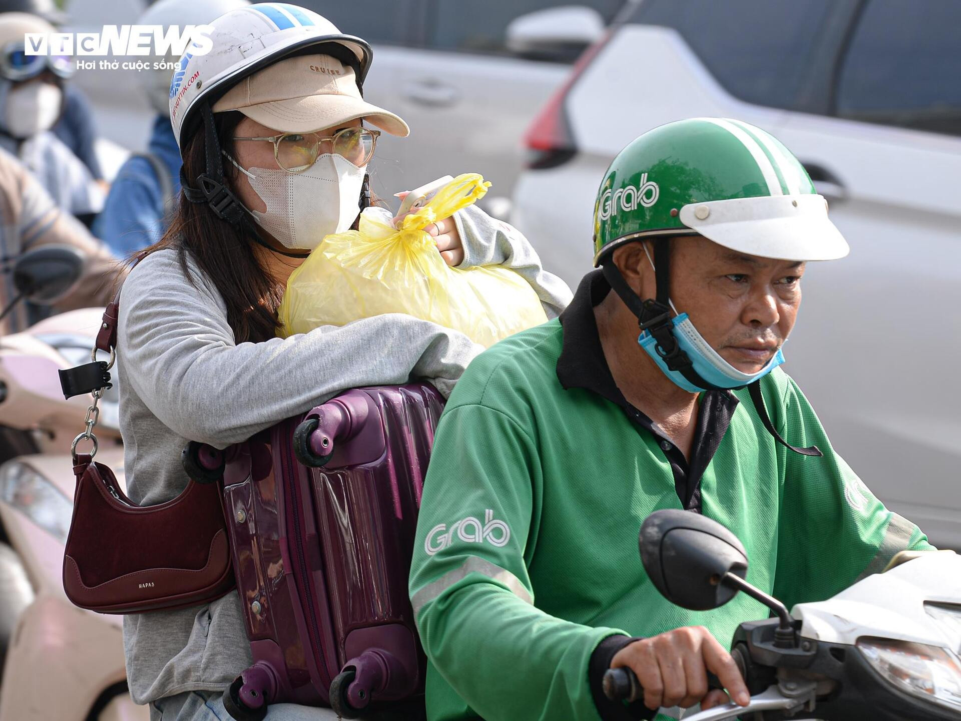 Những chiếc xe máy được chằng buộc kín đáo bằng dây thừng, áo mưa, vali, bao tải… chứa đầy đồ đạc, quà quê.