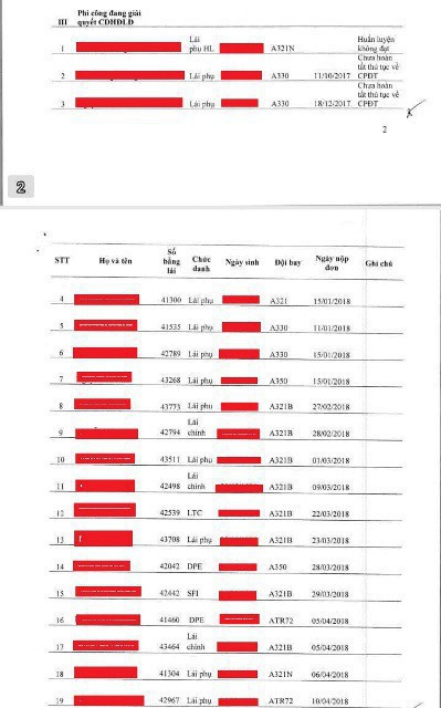Theo báo cáo của VNA gửi Cục Hàng không Việt Nam vào đầu tháng 5/2018, có 2 phi công đã chấm dứt hợp đồng, 7 người mới nộp đơn và 19 trường hợp đang giải quyết chấm dứt hợp đồng lao động.