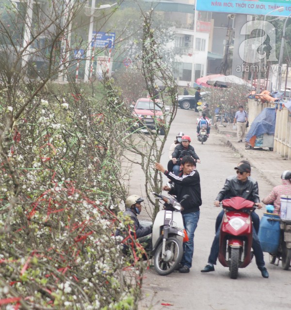 Những cành hoa lê từ miền Tây Bắc được các thương lái đưa về Hà Nội bán phục vụ người chơi dịp Rằm tháng Giêng thu hút người dân Thủ đô