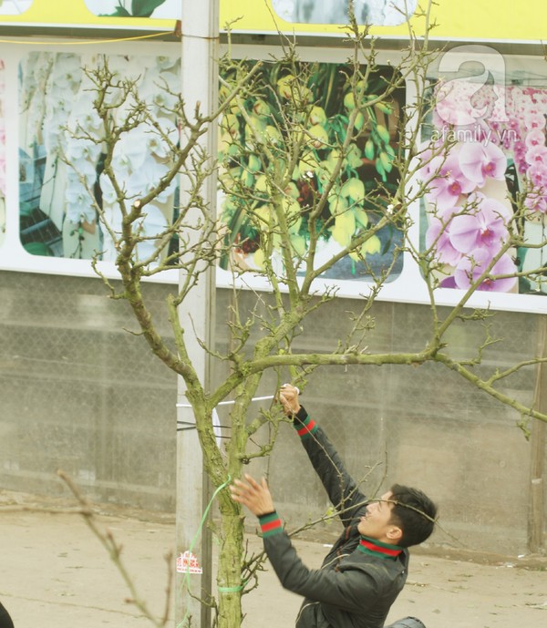 Dù đã qua Tết Nguyên đán nhưng người dân thủ đô vẫn chuộng hoa đào để trưng trong ngày rằm. Ngoài hoa đào, năm nay còn có thêm hoa lê .