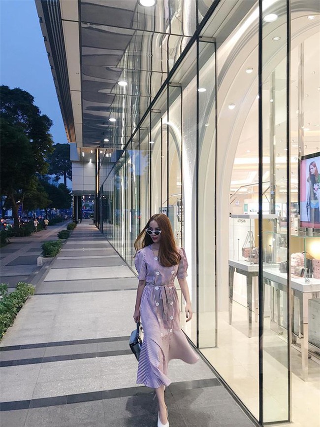 Yến Trang hóa quý cô cổ điển nhẹ nhàng khi diện thiết kế váy liền thắt eo đơn giản.