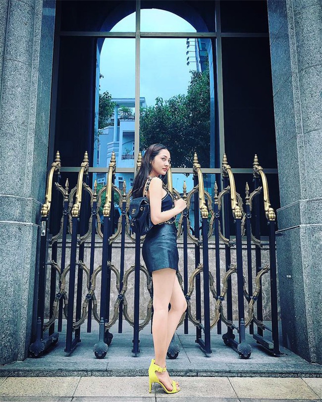 Bảo Anh khoe đường cong chuẩn mực với chiếc váy ngắn cũn bó sát, kết hợp ba lô Chanel và sandals màu nõn chuối nổi bật.