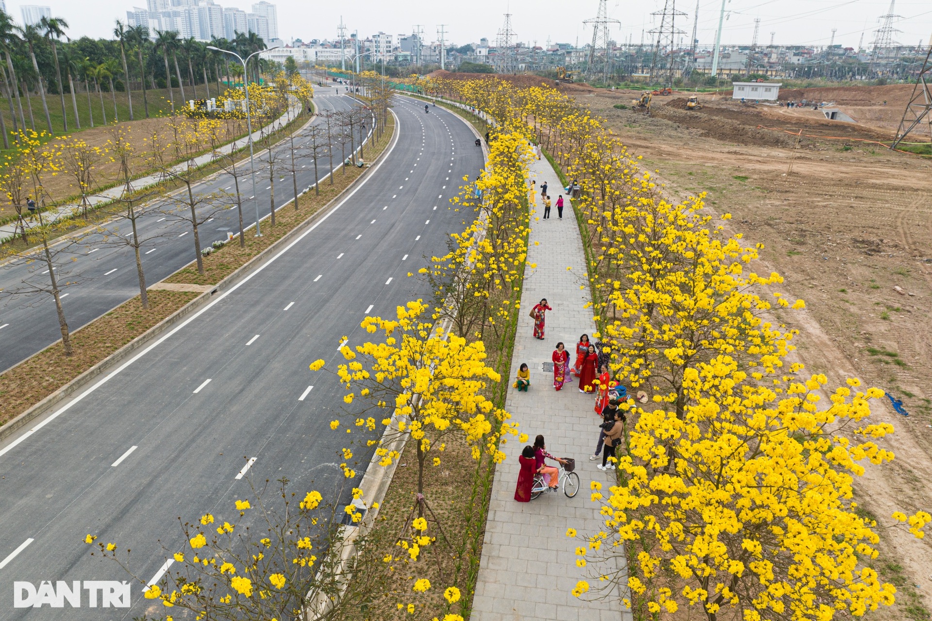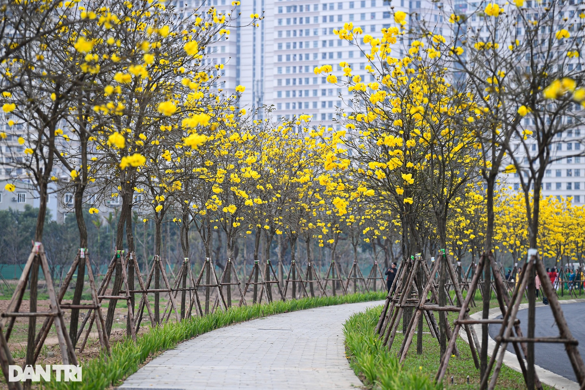 Những ngày cuối tháng 2, trên nhiều cung đường tại Hà Nội, những hàng hoa phong linh bắt đầu nở rộ tạo nên một sắc vàng rực rỡ thu hút sự quan tâm của đông đảo người dân Thủ đô.