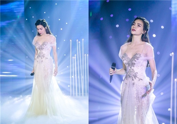 Dù đang bận rộn với lịch ghi hình cho chương trình truyền hình thực tế The Face Vietnam 2016 nhưng Hồ Ngọc Hà vẫn không quên “giữ lửa” với sân khấu âm nhạc. Xuất hiện trong đêm nhạc vừa qua, bà mẹ một con diện váy ôm khoe đường cong trên nền chất liệu ren, lưới xuyên thấu mềm mại, gợi cảm. Màu sắc nhẹ nhàng, ngọt ngào càng giúp Hồ Ngọc Hà trở nên thu hút hơn.