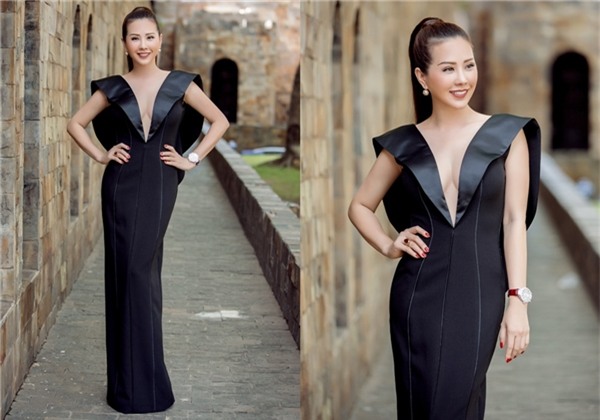 Dù đã hơn 40 tuổi nhưng Thu Hoài vẫn khiến đàn em ganh tị khi luôn giữ được sắc vóc đáng mơ ước. Trong buổi ghi hình cho một chương trình thực tế, Hoa hậu Phu nhân diện váy đen dài xẻ ngực được tạo điểm nhấn bằng những đường cắt, nối tinh tế. Thiết kế mang lại vẻ ngoài đơn giản nhưng vô cùng sang trọng, tinh tế.