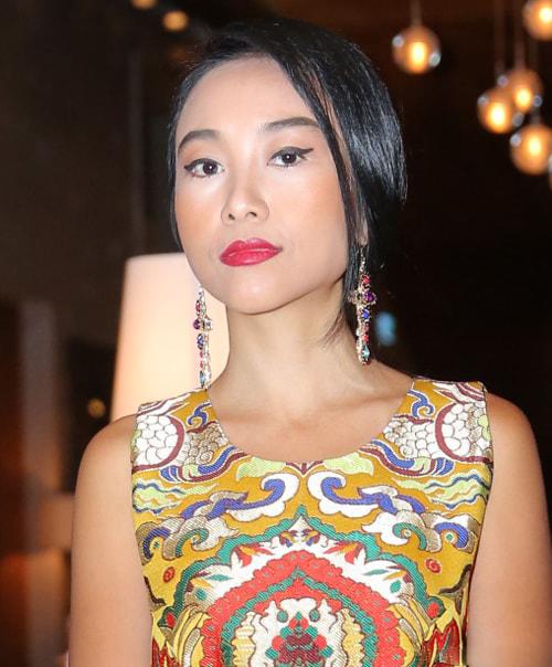 Áp dụng lớp nền cam đậm và không đều màu cộng thêm phần eyeliner dày quá mức khiến cho khuôn mặt của Đoan Trang trông đơ và dừ.
