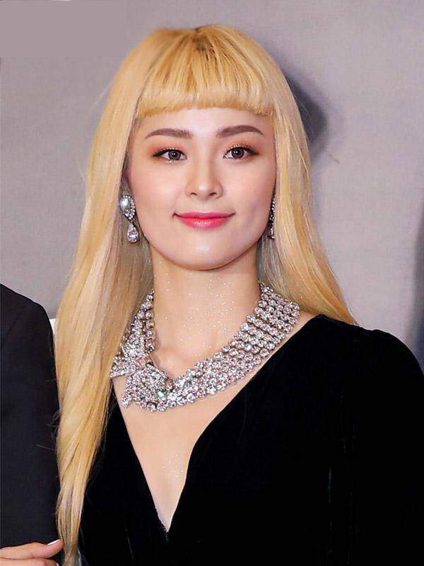 Nhấn màu mắt cam sáng nhưng lựa chọn tông hồng cho đôi môi, lối trang điểm đậm này khiến cho khuôn mặt người đẹp mất đi vẻ ngoài thanh thoát. Thậm chí, mái tóc vàng chóe và phần mái ngổn ngang càng làm mất điểm của Hạ Vi trong mắt người hâm mộ.