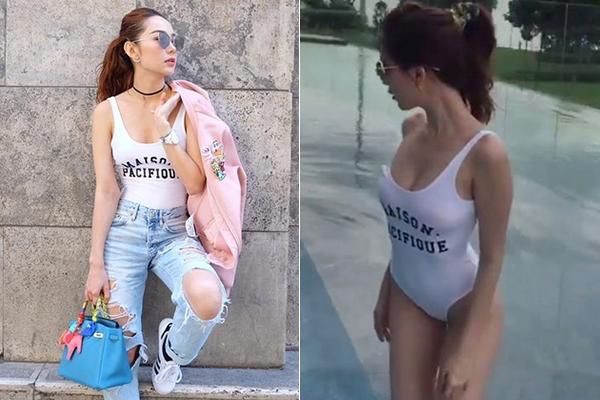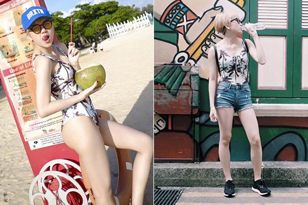 Thiều Bảo Trâm cũng tận dụng tối đa những set bodysuit để vừa đi bơi vừa diện xuống phố cùng bạn bè.