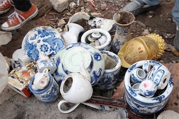 Những bát hương, đồ thờ cúng được tập hợp lại 1 điểm.