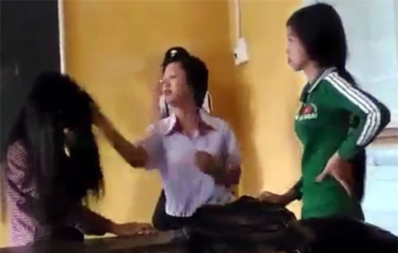 Đoạn clip có độ dài hơn 1 phút được đăng tải lên mạng ghi lại cảnh một nữ sinh liên tục tát vào một bạn nữ trong lớp học. Bên cạnh còn có sự cổ vũ nhiệt tình của các bạn, thậm chí những học sinh này còn đóng cửa lớp để tránh bị thầy cô phát hiện.