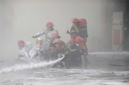 Từng tham gia chữa cháy nhiều như vụ 36 nhà gỗ ở đường Hồng Hà (quận Hoàn Kiếm), cháy cửa hàng nội thất 114 Âu Cơ..., Phúc kể, vụ cháy trạm xăng lần này là "khủng khiếp chưa từng có".