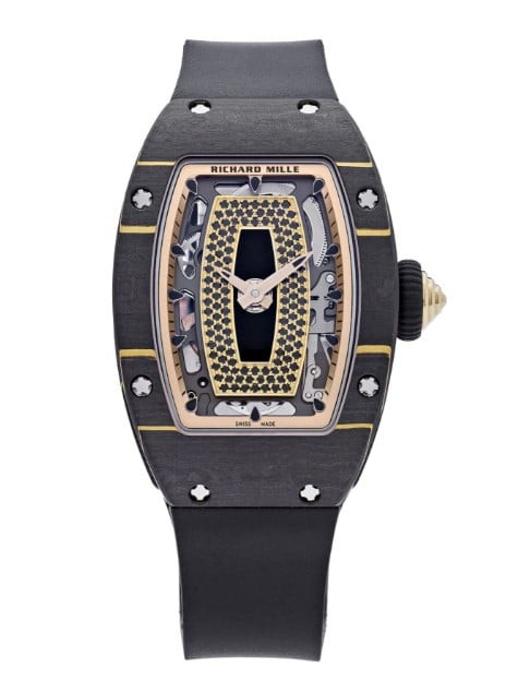 RM 07-01 Gold Carbon TPT gây ấn tượng bởi lớp vỏ pha trộn giữa vàng với carbon TPT, mặt số nạm sapphire và onyx đen tuyền, được yết 275.000 USD (hơn 7,2 tỷ đồng) trên Wrist Aficionado.