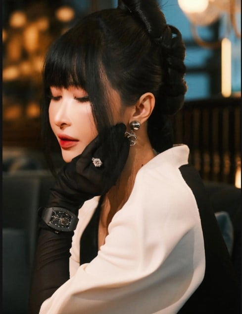 Là vợ doanh nhân Minh "Nhựa" - một trong những "tay chơi Richard Mille khét tiếng" tại Việt Nam, Mina Phạm cũng sở hữu bộ sưu tập đồng hồ xa xỉ đáng mơ ước. Tháng 9/2025, cô khoe mẫu RM 74-01 cá tính vừa bổ sung vào tủ đồ triệu đô.