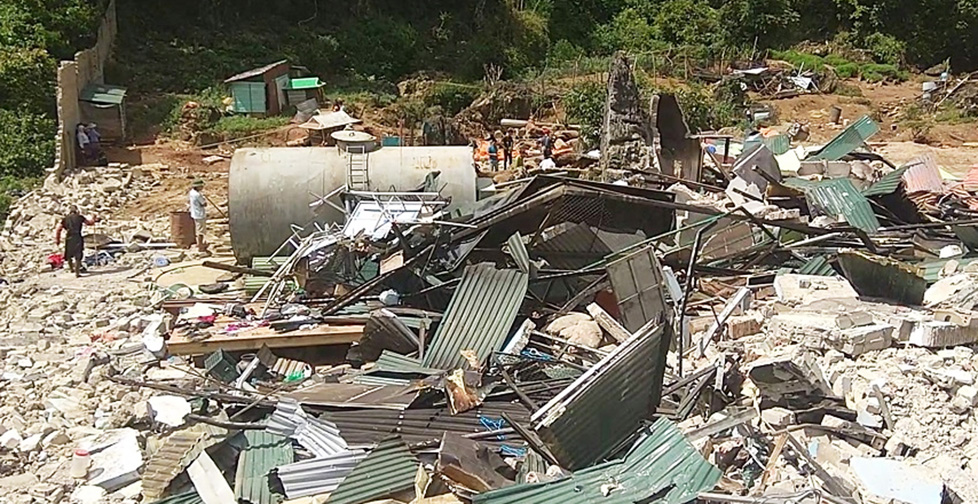 Những mảng tường chi chít vết đạn, khói đen bao phủ phía trên mái tôn do các đối tượng gây nổ bình xăng, gas đã phần nào phản ánh sự chiến đấu khốc liệt của lực lượng công an với hai tên trùm ma túy đặc biệt nguy hiểm này.