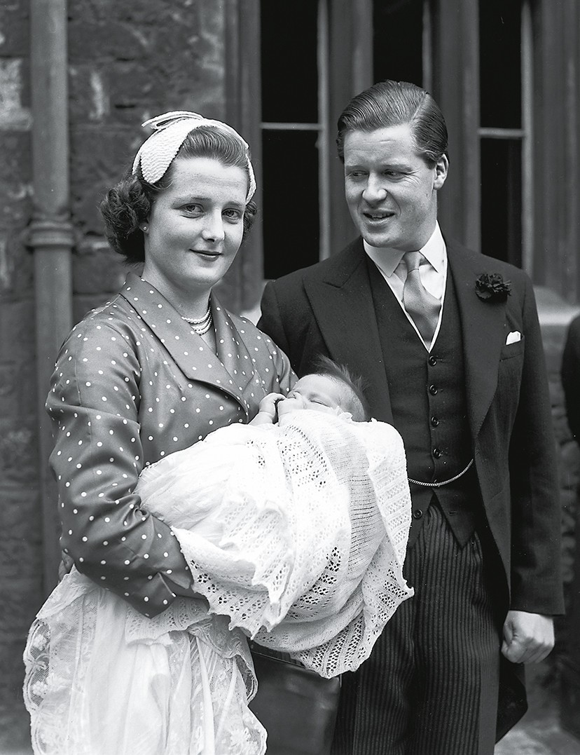 Bà Frances Shand Kydd bế Công nương Diana cùng với người chồng đầu tiên của mình.