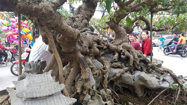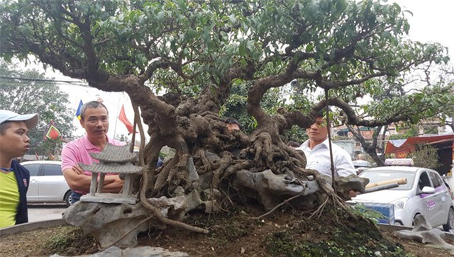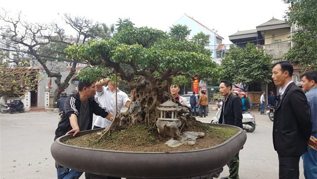 Dân làng và khách thập phương được dịp ngắm dáng cây có tuổi đời hàng chục năm, với giá lên tới cả tỷ đồng.