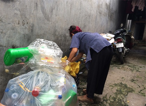 Kết thúc cuộc trò chuyện ngắn với chúng tôi, bà Phải với dáng người nhỏ thó lại vội vàng đội hơn 10kg phế liệu đã được bà lọc kỹ càng lên đầu và mang đi bán cho cơ sở thu mua đồng nát.
