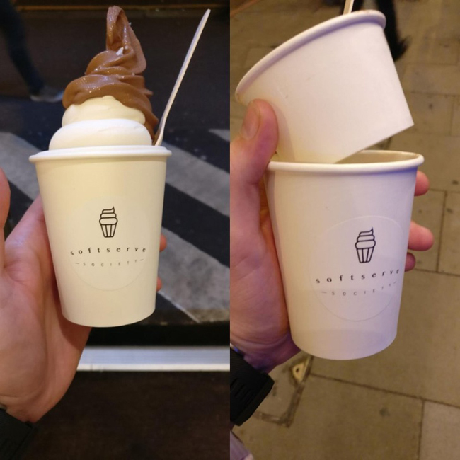 Chắc sợ khách hàng cầm kem lạnh tay đây mà.