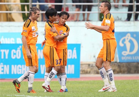 | Năm 2012, Quốc Anh lập cú đúp trong trận đấu cuối cùng, giúp SHB Đà Nẵng đăng quang tại Ninh Bình. |
