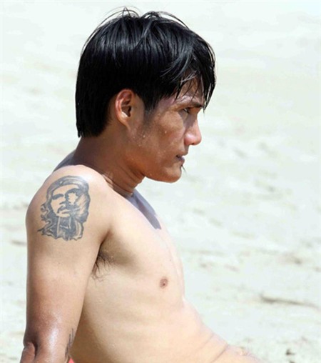 | Quốc Anh xăm hình Che Guevaravà dòng chữ "Nothing Impossible" (Không gì là không thể) để thể hiện quyết tâm trở lại. |