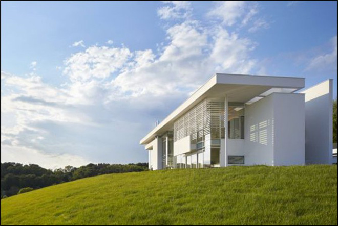 Căn nhà có 5 phòng ngủ này gồm hai trái nhà và được nối với nhau bằng cầu. Biệt thự sử dụng toàn bộ năng lượng mặt trời, khu vườn tự động và ga ra bí mật để chứa bộ sưu tập xe sang của ông.