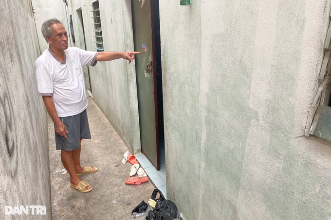 Ông Lo bên cạnh căn phòng trọ của vợ chồng T.L. (Ảnh: Nguyễn Vy).