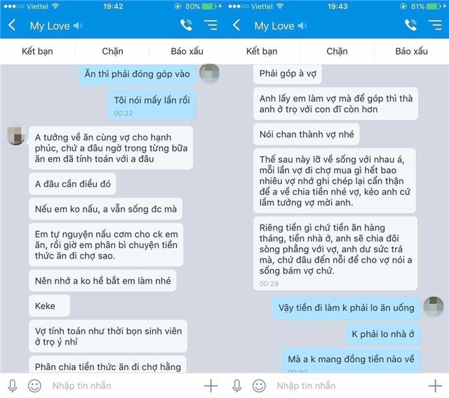 Mình cho anh nhiều thì anh vui vẻ nói cười, cho anh ít thì anh thái độ lồi lõm mặt nặng mày nhẹ mình biết nhưng thời buổi kinh tế khó khăn muốn anh vui vẻ cũng khó. Mình rất buồn nhưng nghĩ dù sao cũng chồng mình.