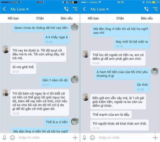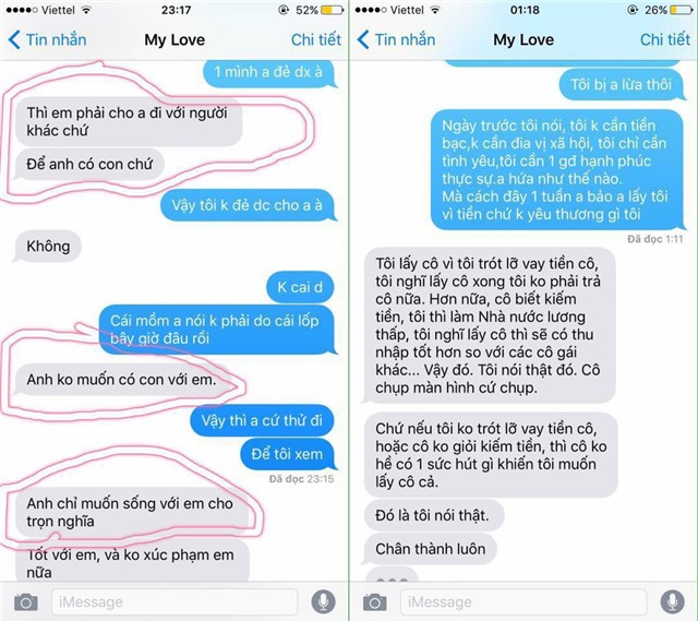Theo lời anh bảo anh lấy mình vì mình giỏi kiếm tiền. Vì trước khi cưới anh vay mình gần 100 triệu, lương anh ba đồng ba cọc không thể trả, mà số nợ đó trước sau gì vẫn phải trả, nếu lấy mình thì không phải trả mà ngược lại còn có tiền tiêu.