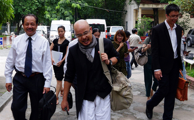 Khác với lần trước, ông Đặng Lê Nguyên Vũ đến tòa với vẻ mặt tươi tỉnh, vui vẻ. Ông tỏ ra cởi mở với báo chí, cho phép phóng viên tiếp cận quay phim chụp hình.