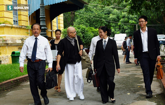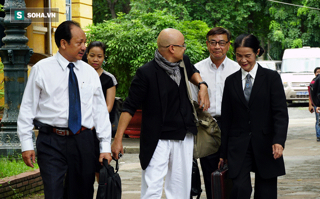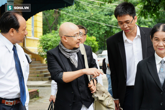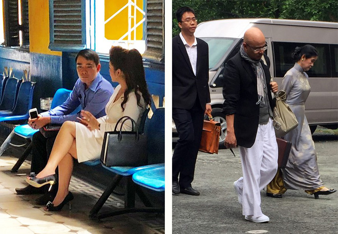Ông chủ Tập đoàn Trung Nguyên mang trang phục quen thuộc với áo vest đen, quần thụng trắng cùng với túi xách vải và khăn rằn quấn cổ. Bà Lê Hoàng Diệp Thảo không đến tòa mà chỉ có người đại diện trên pháp luật.
