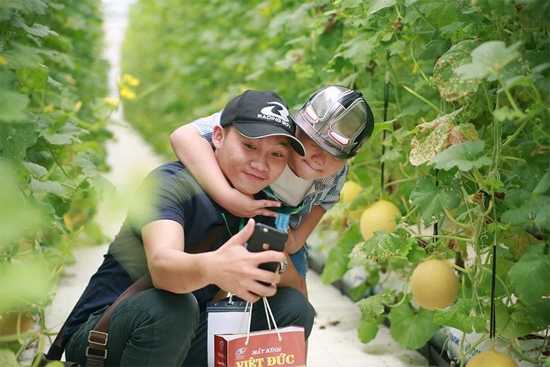 Mỗi chặng đường, các thành viên tham gia Hành trình nông sản sạch đã có những phút giây vui vẻ, bất ngờ khi tận mắt ngắm những vườn rau xanh mướt mắt hay vườn dưa lưới trĩu quả.