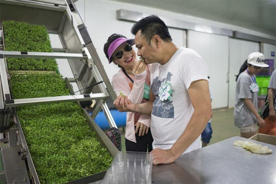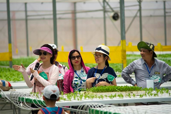 Các hành khách được khám phá quy trình rau sạch đạt chuẩn VietGap được đóng gói, dán nhãn trước khi đưa ra các siêu thị phục vụ người dân.