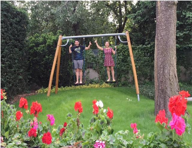 Lối vào căn biệt thự nhà Thu Minh tại Séc. Trong hình, người em thân thiết của Thu Minh đang bế con trai cô dạo chơi.