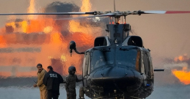 Đặc vụ liên bang đang hộ tống cựu Tổng thống Venezuela Nicolas Maduro. (Ảnh: Reuters)