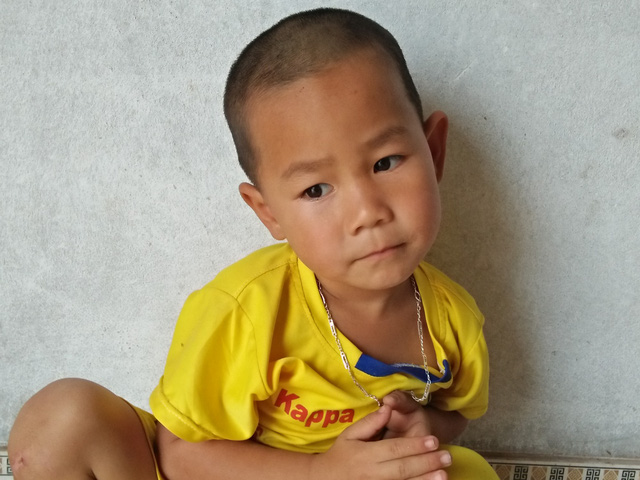 Bé Điệp buồn bã mỗi khi có người lạ hỏi mẹ. (Ảnh: N.Hoàng)