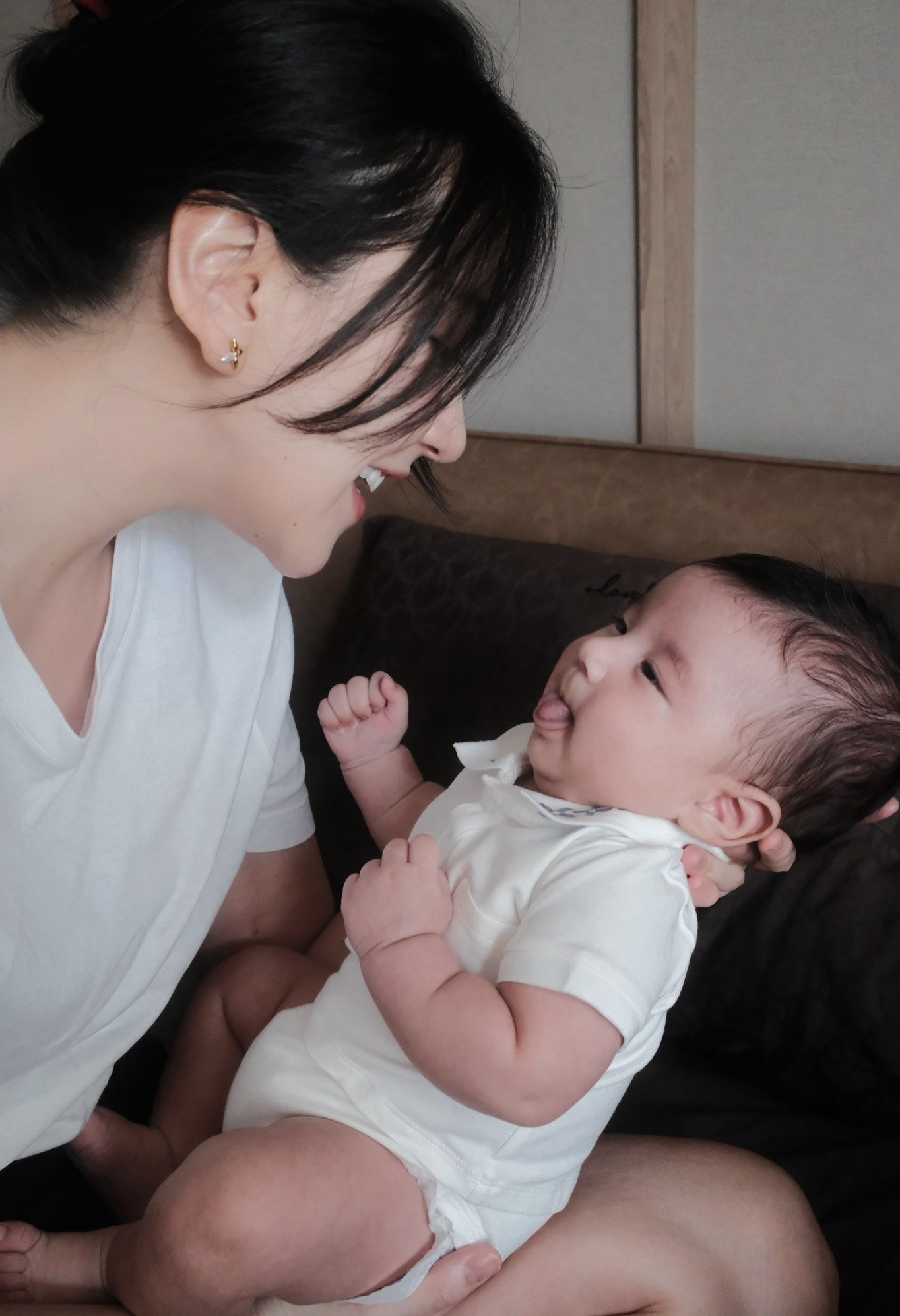 Cô tâm sự: "Cuộc sống trước đây của tôi luôn là kế hoạch, lịch trình nghiêm khắc. Từ khi có em, mọi thứ đều thay đổi nhưng rất đáng yêu".