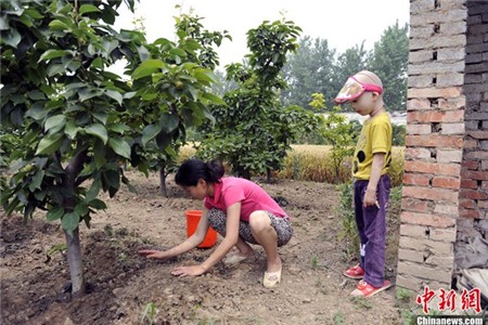 Thảo Phi giúp mẹ làm vườn.