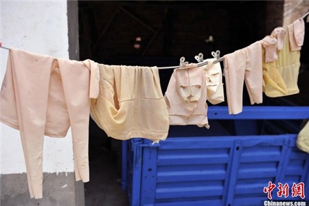 Mặt nạ và quần áo bó sát của Thảo Phi. Mỗi bộ đồ đặc biệt này tốn tới 1.200 tệ (hơn 4 triệu đồng), tương đương với thu nhập một tháng của gia đình em.