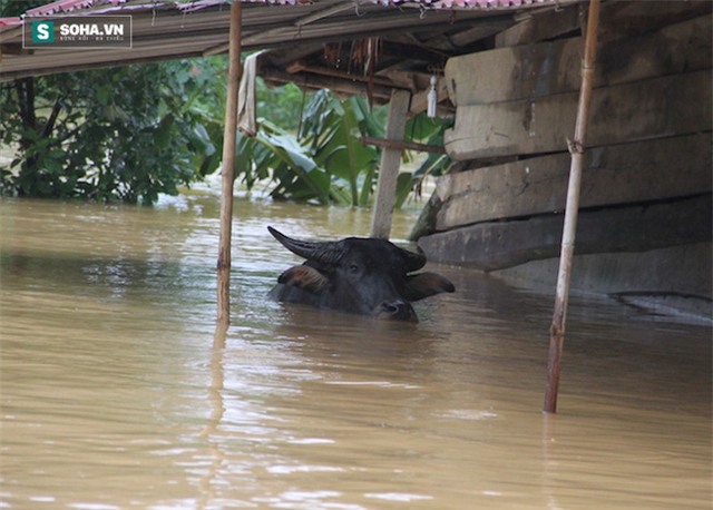 Hoặc trâu phải chấp nhận nằm trong nước lũ kinh hoàng.