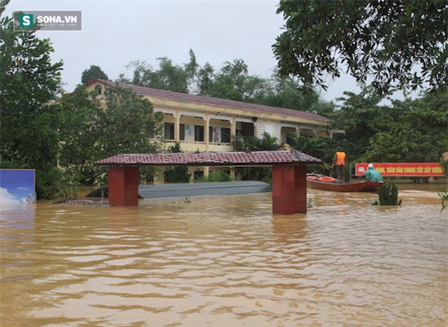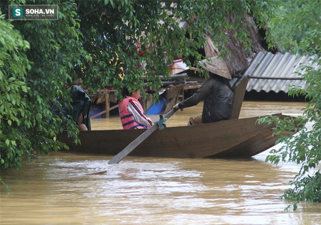 Bị cô lập, nước lũ ngập sâu từ 2-3m nên phương tiện duy nhất để đi lại các điểm đều là bằng thuyền.
