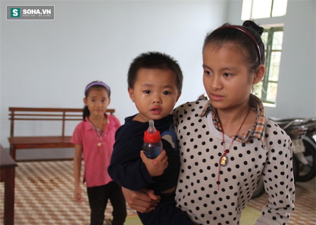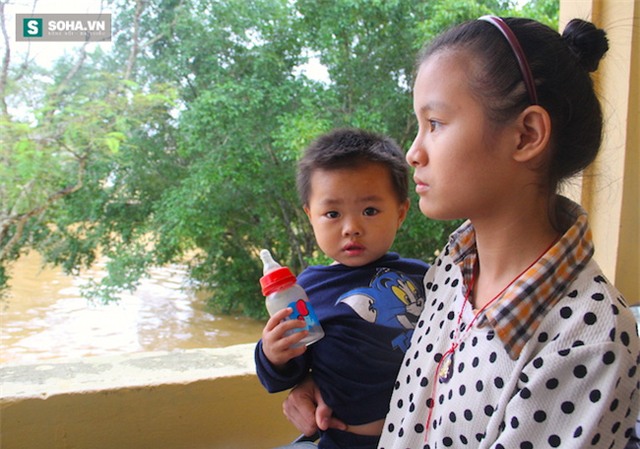 Xung quanh nước lũ trắng xoá, chị em Uyên ngóng bố mẹ đi dọn đồ đạc trong nhà đi gửi hàng xóm ở vùng cao.