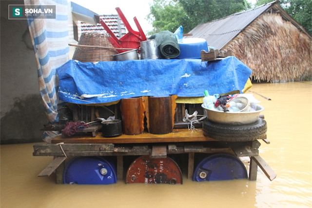 Do lũ lên nhanh, các gia đình không kịp đem đồ đi gửi chỉ kịp làm bè nổi rồi cất đồ lên.