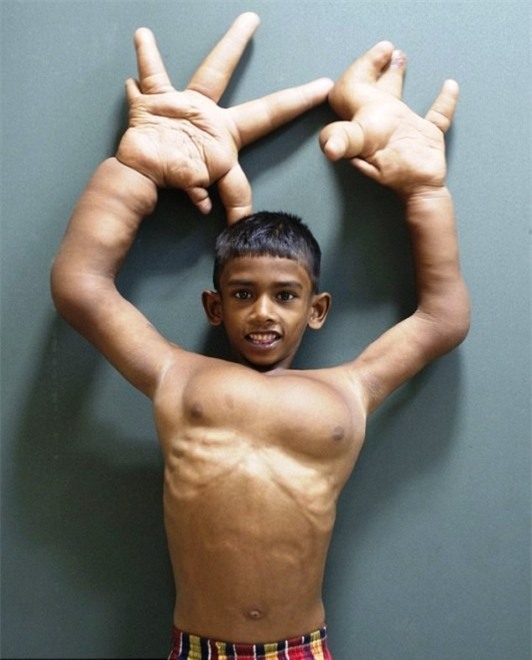 Càng lớn, đôi bàn tay cậu bé cũng phát triển theo và dẫn trở nên mất cân đối với trọng lượng cơ thể. Tới nay, khi em được 8 tuổi thì mỗi bên bàn tay đã nặng tới 8 kg và dài 33 cm tính từ cổ tay đến cuối ngón tay giữa .